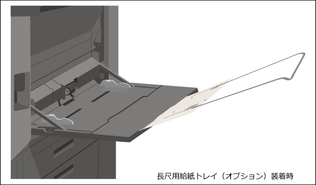 ※ここでは、手差しトレイに長尺用紙給紙トレイ(オプション)を装着して、用紙をセットする方法で説明します。