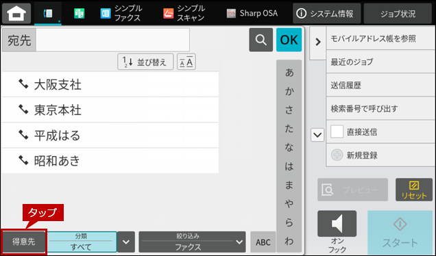 2. アドレス帳が表示されますので、[得意先]をタップします。