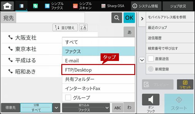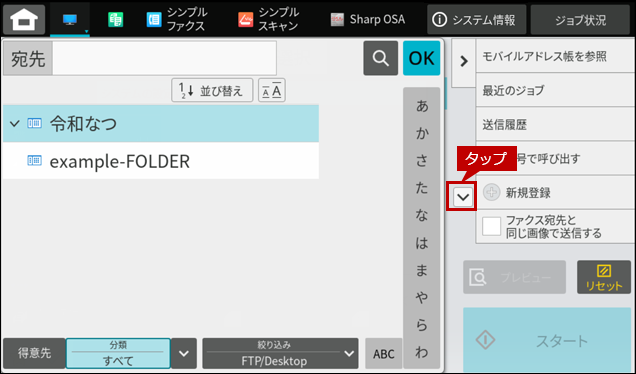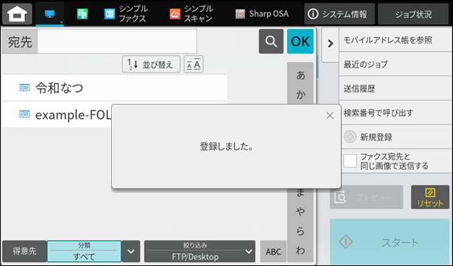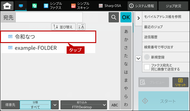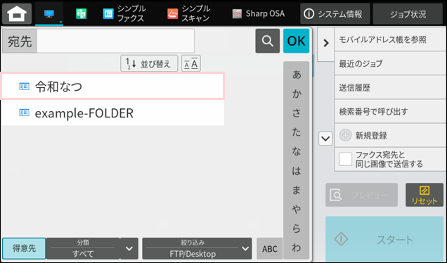 ネットワークスキャナーツールLiteで作成したプロファイルは「FTP/Desktop」としてアドレス帳に登録されます。