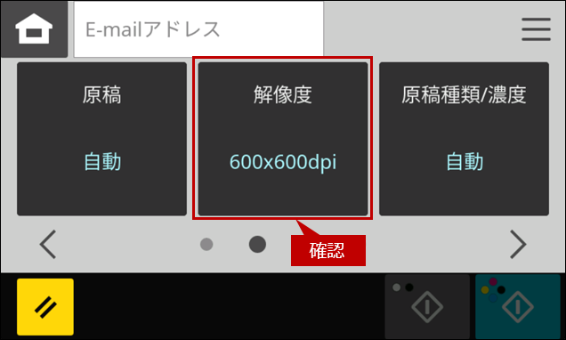 3. スキャンの解像度の規定値(デフォルト値)が変更されていることを確認します。