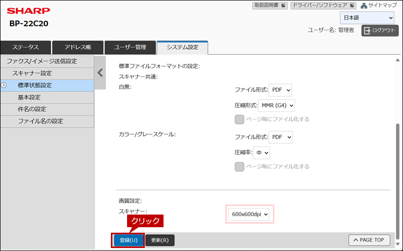 これで、スキャン解像度の規定値(デフォルト値)が変更されました。次にスキャン解像度の規定値が正しく変更されていることを確認します。