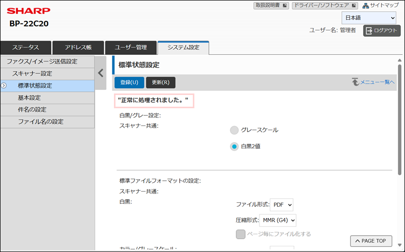 9.「正常に処理されました。」と表示されます。