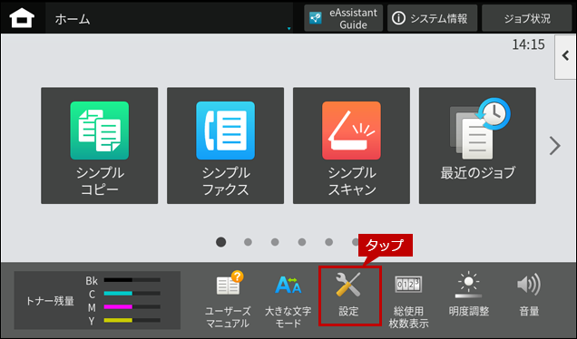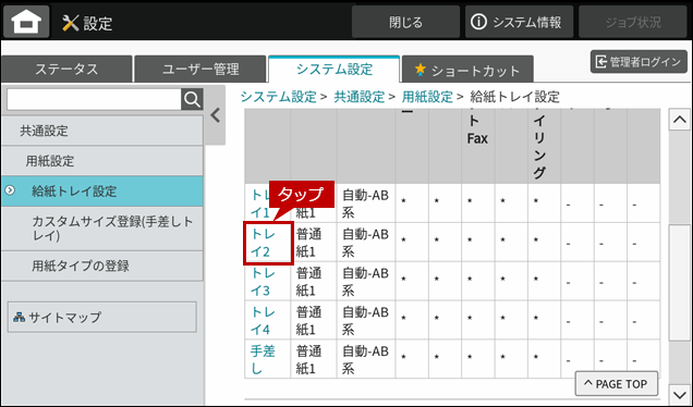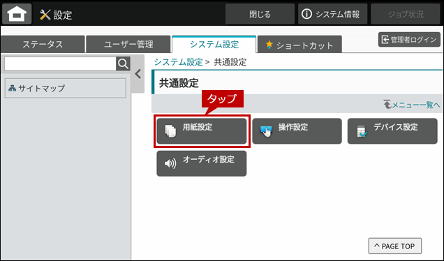 3. 共通設定画面が表示されますので、[用紙設定]をタップします。