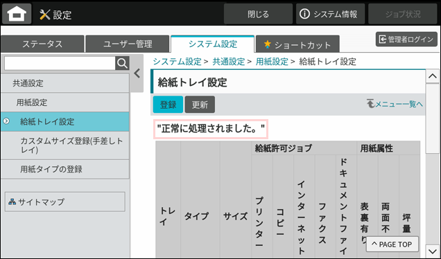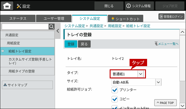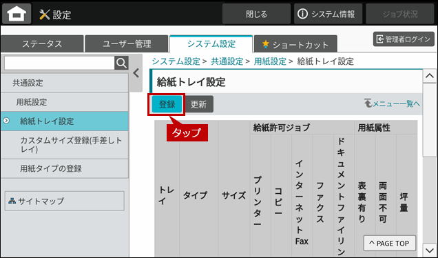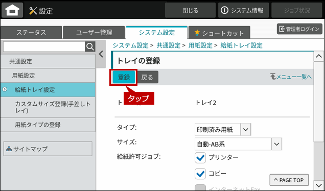9. 給紙トレイ設定画面に戻りますので、[登録]をタップします。