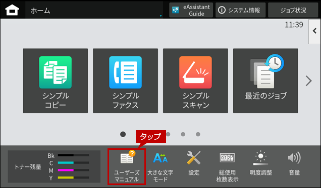 1. ホーム画面で[ユーザーズマニュアル]をタップします。