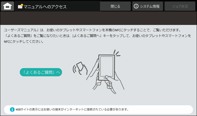 ここでは、モバイル端末を使用して複合機のマニュアルを入手する方法を記載いたします。