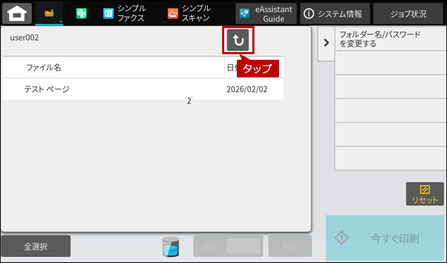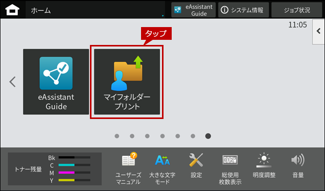● [マイフォルダープリント]ボタンがトップページにない場合は、ホーム画面を右にスクロールしてください。