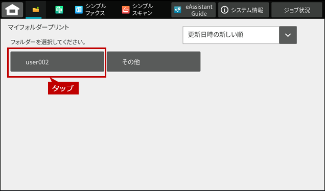 2. 「マイフォルダープリント」画面が表示されますので、[フォルダー]をタップします。