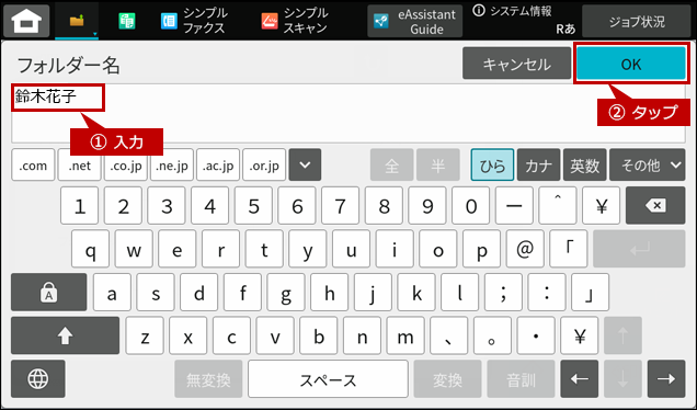 5.入力画面が表示されますので、フォルダー名を変更して、[OK]をタップします。
