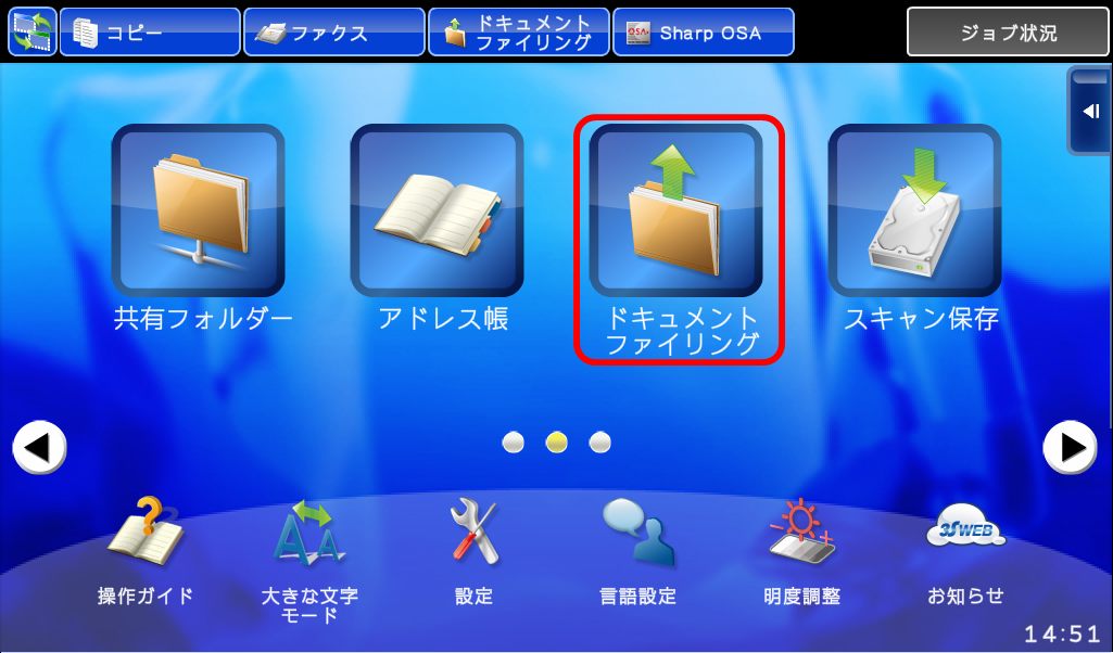 ②ホーム画面の[ドキュメントファイリング]アイコンをタップします。