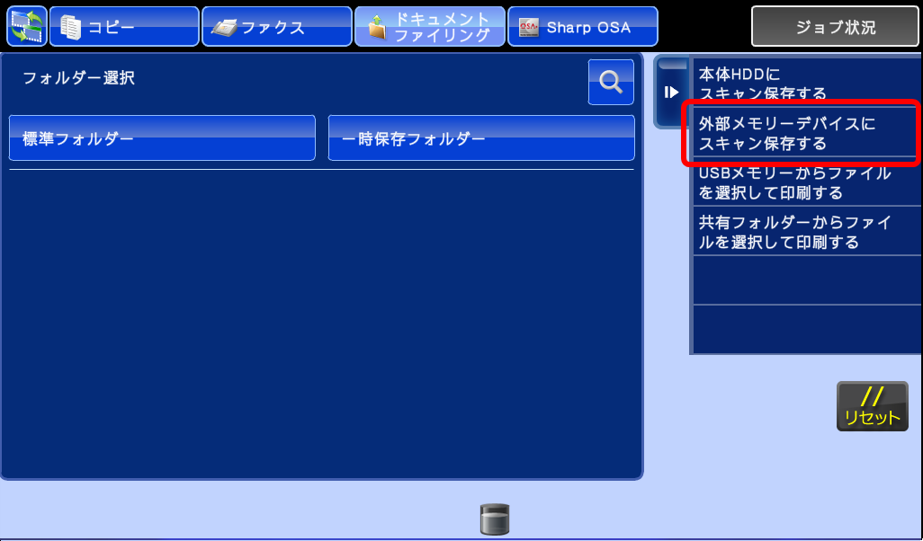 ③右列(アクションパネル)の[外部メモリーデバイスにスキャン保存する]をタッチします。