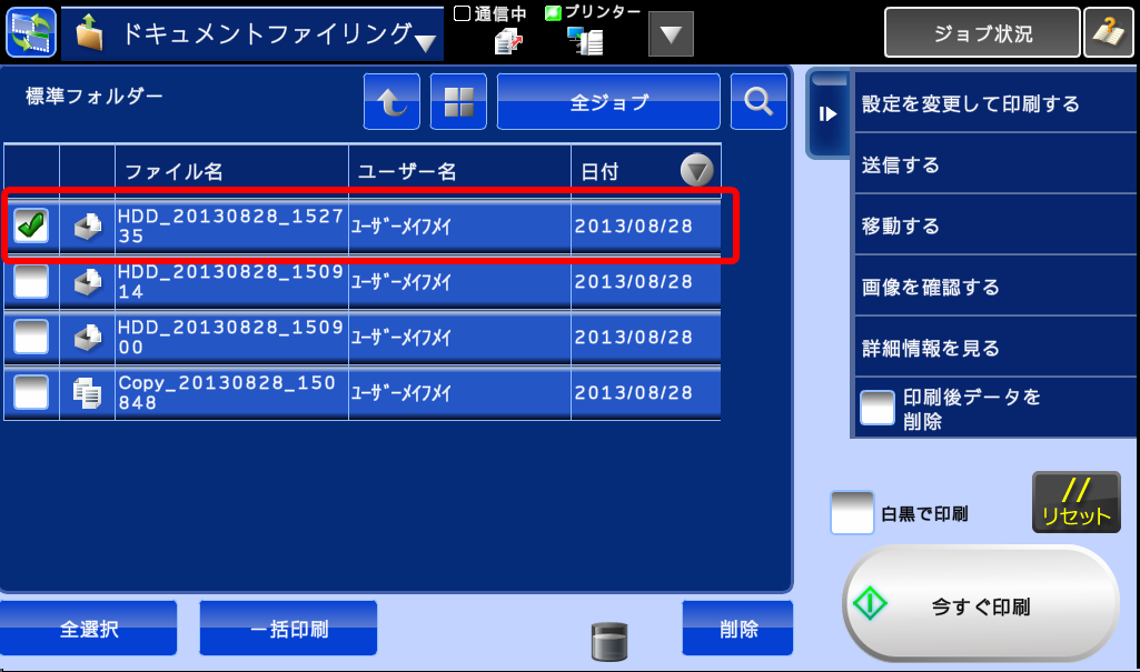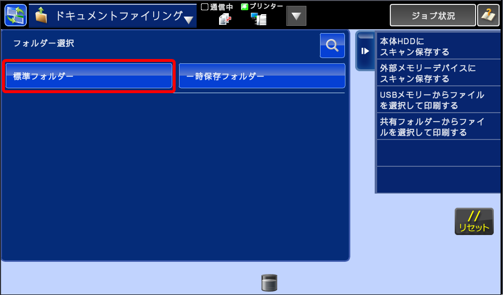 ②データが保存されてるフォルダをタッチします。ここでは標準フォルダーを選択しています。