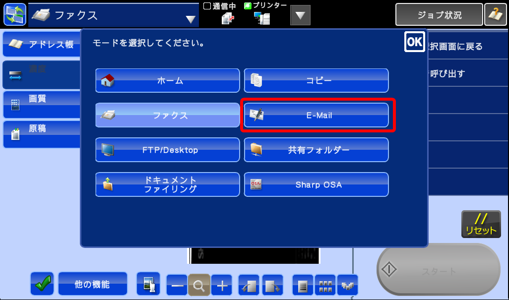 ⑦モード選択画面が表示されますので、E-Mailを選択します。