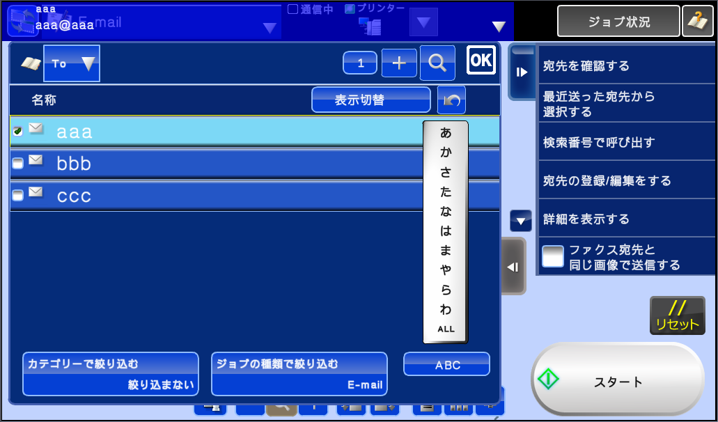 ※選択したアドレスの「通常使用する宛先に設定する」が送信する宛先になります