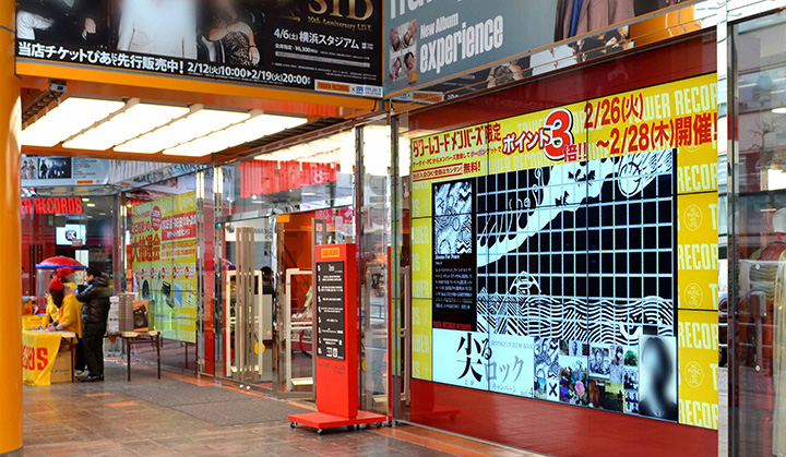 弊社製品を導入されたタワーレコード株式会社さま 渋谷店では、多数の通行客へ新作プロモーションの積極的な配信を行い、来店者数を大きく増やすことに成功しました。