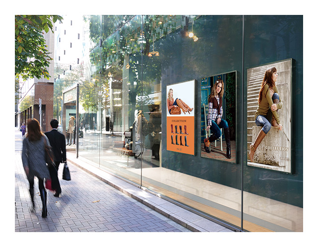 明るい場所へデジタルサイネージを設置する場合は、高輝度パネル採用のディスプレイをお勧めします。