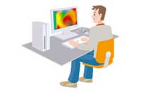 配信・表示ソフトウェア「e-Signage」を使うことで、動画や文字を組み合わせたコンテンツなどのプロモーション映像を、簡単な作業で社内作成できます。