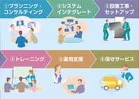 ネットワークを介した大規模配信から、USBメモリーによる配信まで、用途、シーン、お持ちのシステムに応じた運用方法を選んで、簡単にコンテンツやレイアウト情報などの配信・表示をコントロールできるシステムです。