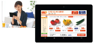 食料品や日用品などの電子チラシを、ネットスーパー会員のタブレット端末へ直接配信。自宅にいながら端末からそのまま注文していただけます。会員ごとの購買動向やポイントなどの情報も一括管理できます。