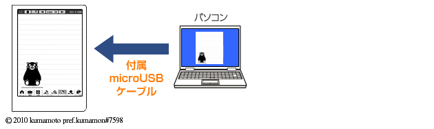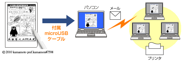パソコンと電子ノートを付属のmicroUSBケーブルで接続し、電子ノートのデータをパソコンに取り込むことができます。