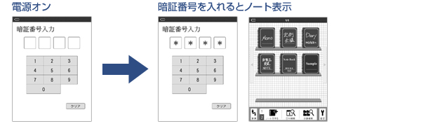 - 暗証番号で保護できる画面ロック機能