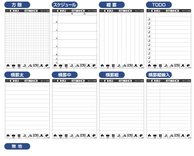 9種類のノートフォームを内蔵