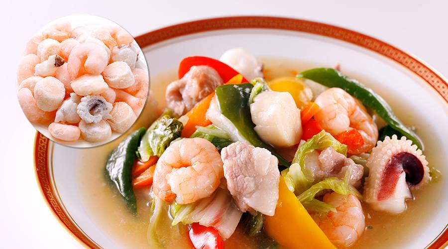 煮物やカレーなどに使う肉や切り身魚は、解凍の手間なく、冷凍のまま使うことができます。冷凍のシーフードミックスも、そのまま使用して八宝菜に!※2