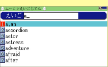 “アルファベット順”や「どうぶつ」「のりもの」などの“なかま”から単語を表示。発音と日本語をリズム音にあわせて聴きながら単語が覚えられます。![]() |
