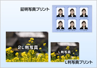 デジタルカメラで撮影した画像ファイルなどをL判/2L判写真用紙にプリントする「L判写真プリント」や、お手持ちの画像で証明写真をプリントできる「証明写真プリント」など、用途に応じてご利用いただけます。