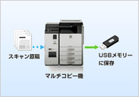 お手持ちの書類などをスキャンして、USBメモリーに保存することができます。