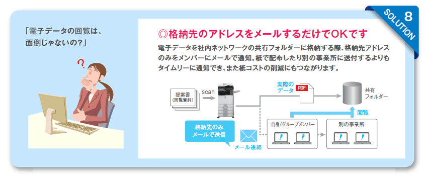 スキャンに関わる作業を、ワンストップで効率化。Sharp OSA®ネットワークスキャナーツールは、オフィスで働く人々を面倒な作業から解放します。