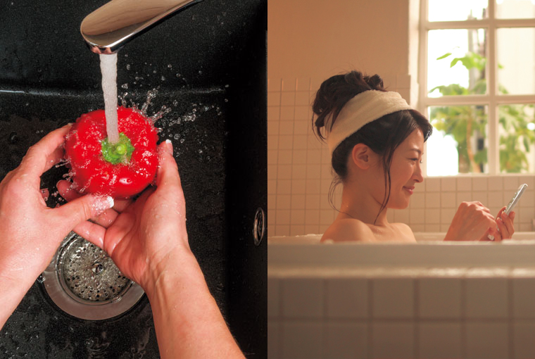 お風呂で使える防水機能やワンセグ・おサイフケータイ®などよく使うケータイ機能をしっかり継承。