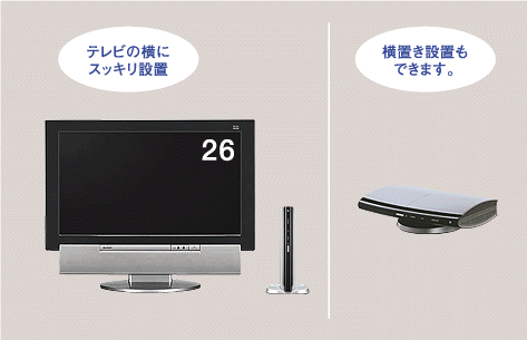 スッキリ、スマートな省スペースデザイン。しかも、設置場所に合わせて縦置きと横置きが選べます。