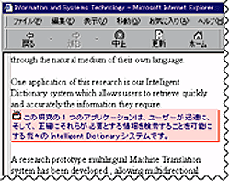 | ※1 | 対応ブラウザはMicrosoft(R) Internet Explorer 3.0/4.0/5.0/5.5日本語版、Netscape Navigator 4.0/4.5/4.6/4.7[ja]。翻訳できるデータは英文HTML文書です。HTML文書に含まれるグラフィック中の英文は翻訳されません。 |