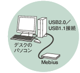 USB2.0による理論値であり、実効速度とは異なります。USB2.0接続での動作には、連携するパソコンがUSB2.0に対応している必要があります。また、USB1.1接続では最大12Mbpsになります。 |