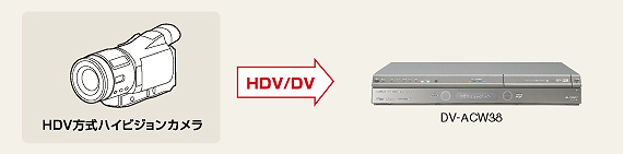| ※1 対応のHDVカメラは、1080i/720p方式の機種のみです。 ※2 HDV/DV方式のデジタルビデオカメラへ本機の映像を出力することはできません。(HDV/DV出力はできません。)また、デジタルビデオカメラ (HDV/DV機器)から本機のハードディスクに録画した映像は、D-VHSなどのi.LINK機器への出力はできません。 | |