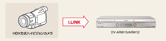 | 本機のハードディスクと他のi.LINK機器(D-VHSビデオデッキなど)との相互ダビングやムーブが可能※2。例えば、ハイビジョンで録画したお気に入りの映像をそのままの画質でD-VHSにライブラリーとして保存できます。 | |