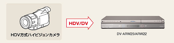 | 本体前面にHDV/DV方式に対応した入力端子を装備、HDV方式のハイビジョンカメラ※1で撮影した美しい家族の想い出の映像をハイビジョン画質のままハードディスクにダビング※2できます。また、DV方式のデジタルビデオカメラとも高品位なデジタルダビング※2が可能です。 | |