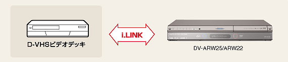 | 本機のハードディスクと他のi.LINK機器(D-VHSビデオデッキなど)との相互ダビングやムーブが可能※1。例えば、ハイビジョンで録画したお気に入りの映像をそのままの画質でD-VHSにライブラリーとして保存できます。 | |