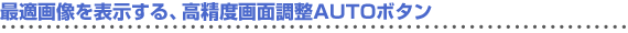 | AUTOボタンを押すだけでクロック、フェーズ、画面位置の調整が自動的に行なわれ、入力信号に応じた最適な画像表示が可能です。 |  |