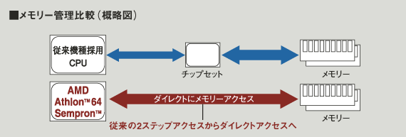 | メモリー読み書きの遅延時間の減少により、メモリーアクセスが高速化。 |