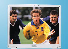 | 文字や画像をよりくっきりと鮮やかに表示する14.1型ピュアクリーン液晶を採用。DVDソフトの映画も、美しく見やすい大画面で楽しめます。 |