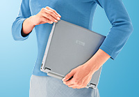 クリアコーティングしたキャビネット、電源ボタンやタッチパッド周辺のメッキ処理、ワンボタン・シーソー方式のマウスボタンなど、洗練された高級感のあるデザインを採用。薄さ22.5mm(最薄部)、軽さ約2.5kgのコンパクト設計なので、部屋から部屋へ手軽に持ち歩けます。 |