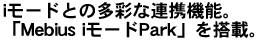 | オリジナルソフト「Mebius iモード Park」を搭載し、iモード携帯電話との多彩なコンビネーションを実現しています。