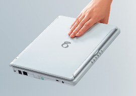 内蔵のCD/DVDドライブにより、出張帰りやカフェで映画ソフトを見るなど、DVDの楽しみが拡がります。ディスクの出し入れがしやすいフロントトレイ式です。また、DVDマルチドライブ搭載のPC-MP70Gなら、DVDレコーダーで録画したテレビ番組などを手軽に編集し、オリジナルDVDが作成できます。(PC-MP50Gは、CD-R/RW&DVD-ROMドライブ搭載) |