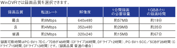 ■録画品質・録画容量/時間 (WinDVR) |