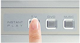 電源オフ状態から、本体かリモコンのボタンをワンタッチするだけで、Windows(R)を起動せずにテレビやDVD、CDがすぐにスタート※1。AV機器感覚で楽しめます。 |