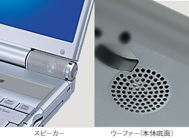 画面下左右にステレオスピーカーを、本体底面にウーファーを装備。高音質&重低音で、迫力のサウンドを再現します。 |