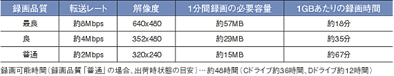 ■録画品質・録画容量/時間 (WinDVR3) WinDVR3では録画品質を選択できます。 |