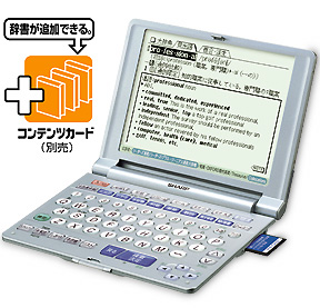 | ※ | 「コンテンツ」とは、情報の中身・内容を指す言葉です。当社では電子辞書に収録している辞書や辞書以外の書籍および電子版のデータを示す総称として用いています。写真掲載の12コンテンツ以外に、電子版コンテンツ「漢字辞典」も収録しております。 |